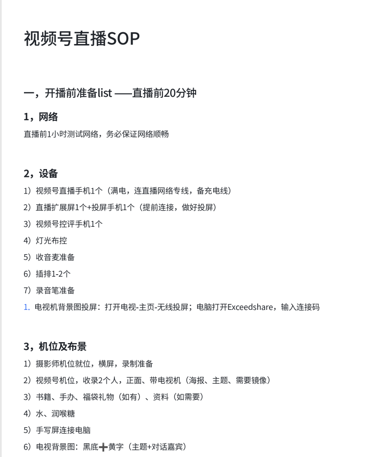 分享一下视频号直播全流程sop