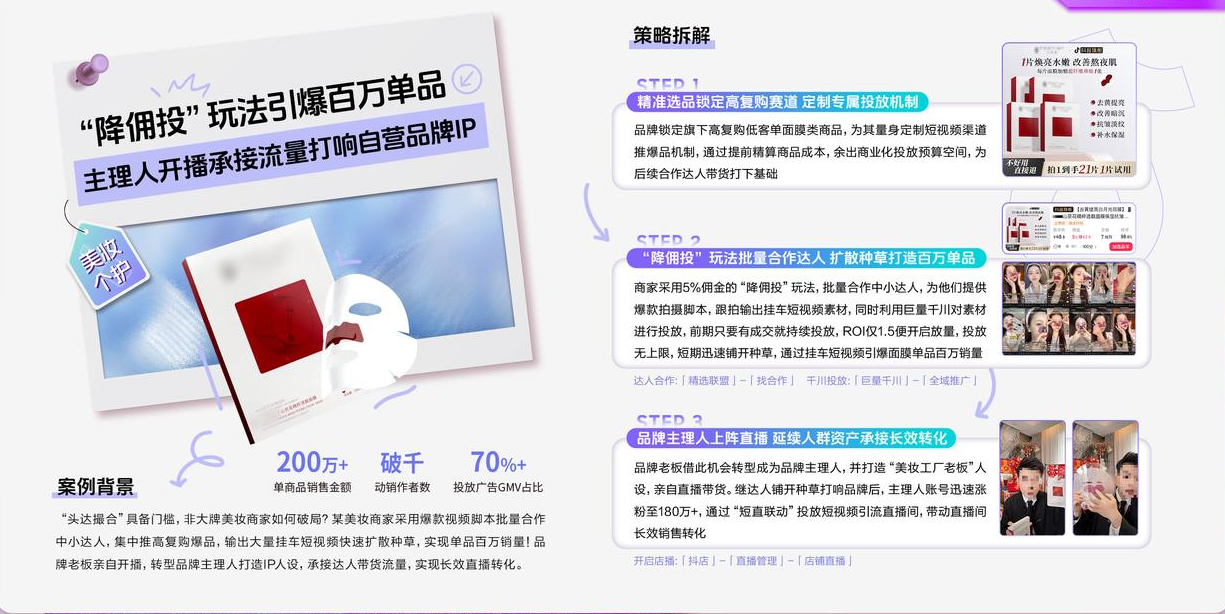 降佣+投放引爆百万单品,主理人开播承接流量打响自营品牌IP